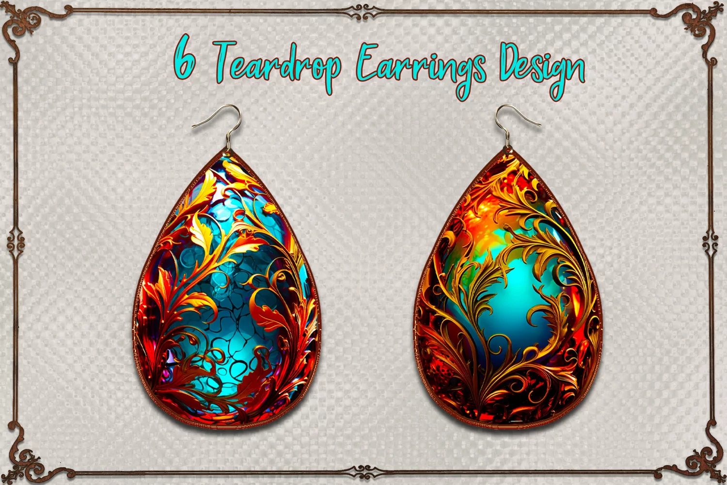 Hanging Earrings I 6 Teardrop Earrings Design, PNG example image 1