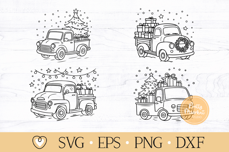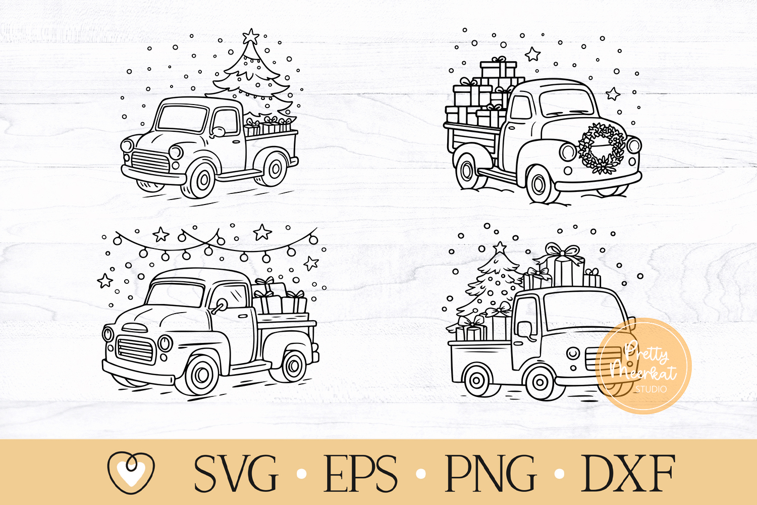Line Art Christmas Tree Svg Christmas Clip Art Christmas Truck Svg Truck Clipart Pick Up Truck Vintage Truck Png Winter Clipart Svg Christmas Png Retro Truck Christmas Svg