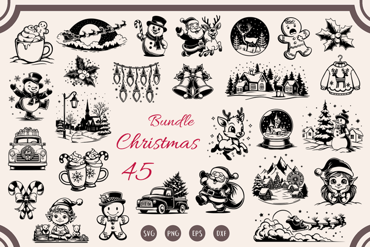 Christmas Svg Christmas Svg Bundle Reindeer Svg Santa Svg Snowman Svg Elf Svg Gingerbread Svg Christmas Truck Svg Winter Scene Svg Flying Santa Svg