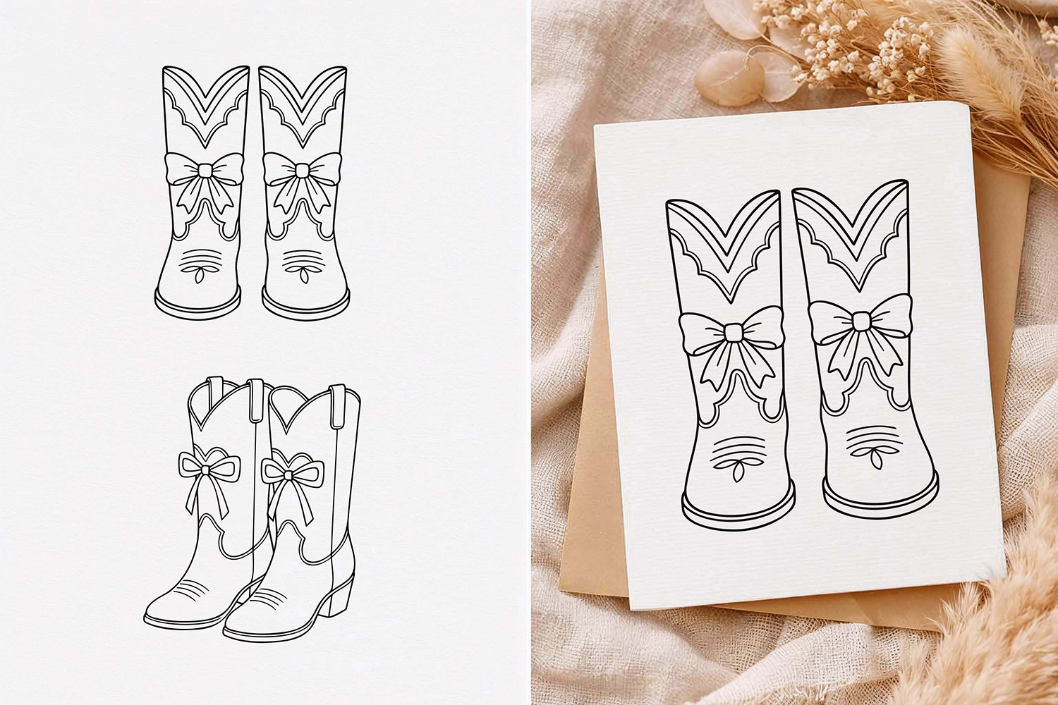 Cowboy Boots svg, Cowgirl Boots with Bow, Line art