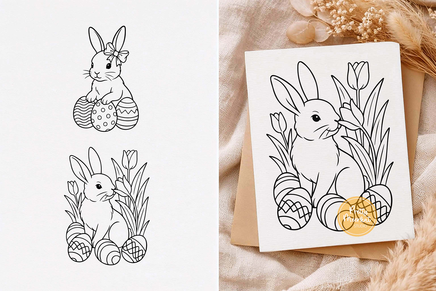 Line Art Easter Svg Easter Cut Files Easter Bunny Svg Spring Svg Easter Clipart Easter Egg Svg Happy Easter Svg Tulip Svg Bunny With Flowers