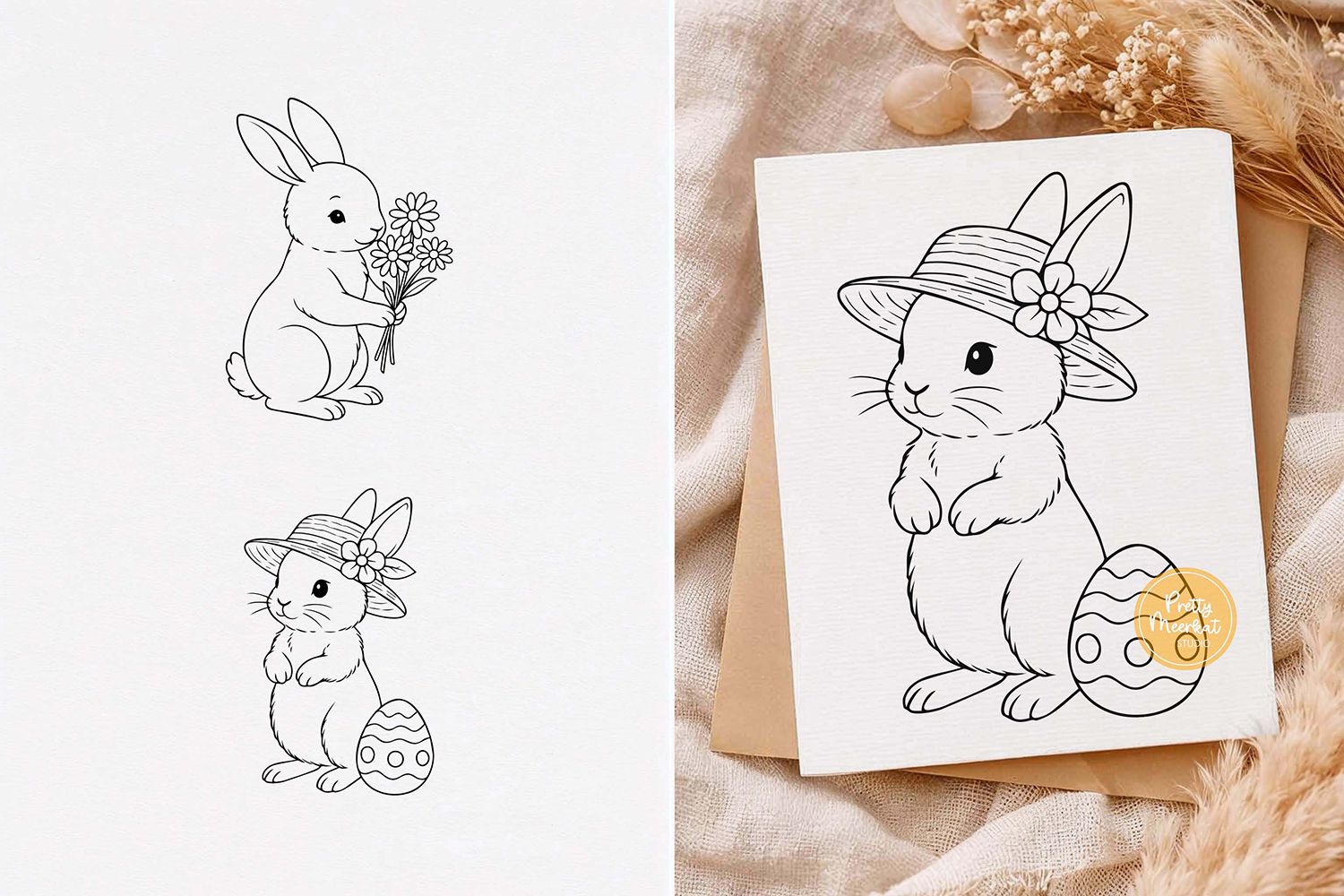Line Art Easter Svg Easter Cut Files Easter Bunny Svg Spring Svg Line Drawing Easter Clipart Easter Egg Svg Happy Easter Svg Bunny With Flowers