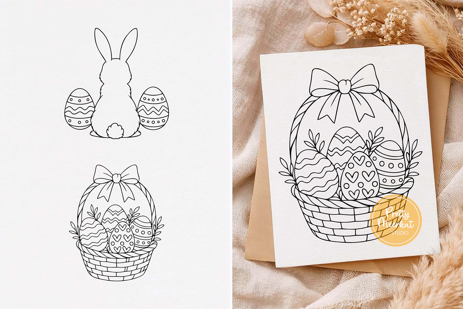 Outline Line Art Easter Svg Easter Cut Files Easter Bunny Svg Line Drawing Easter Clipart Easter Egg Svg Happy Easter Svg Easter Basket Svg