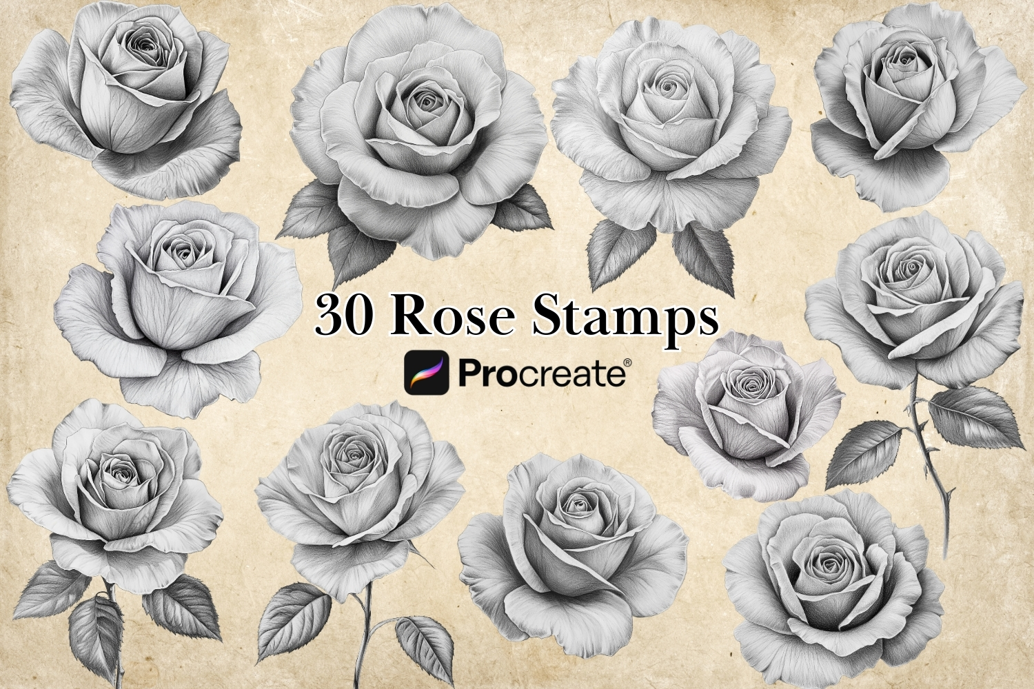 Skip the hours of sketching petals and get right to the creative part! These realistic rose stamps are ideal for artists, designers, tattoo artists and digital creators who want to add elegance and charm to their work. Perfect for adding a touch of floral beauty to your art, this bundle saves you time while delivering stunning, detailed roses at your fingertips.