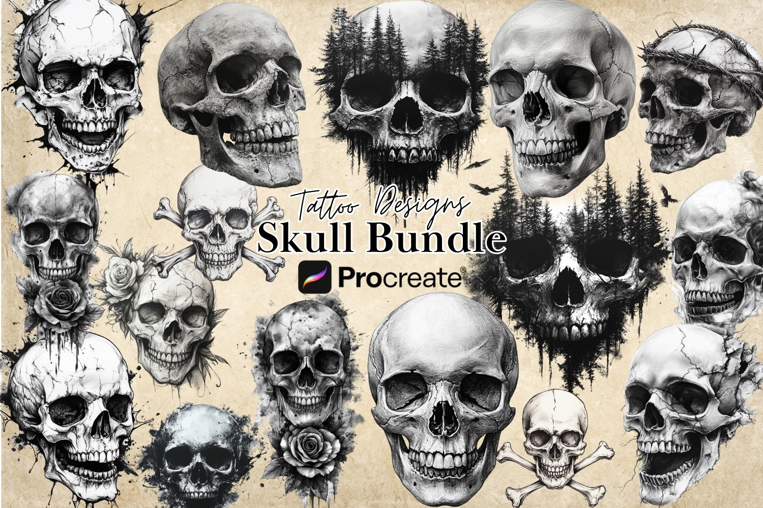Procreate Skulls Stamp Brushes Bundle.