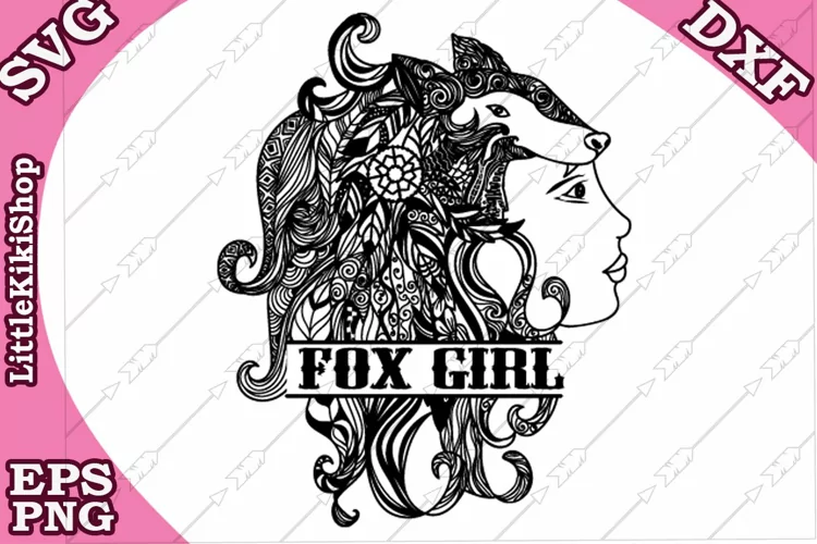 Zentangle Girl Monogram Svg, Mandala Girl Svg,Fox Girl cut