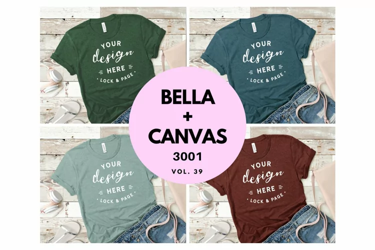 This is our stylish T-Shirt Mockup Collection featuring 4 colors available with Bella and Canvas which are: Heather Deep Teal, Heather Forest Green, Heather Dusty Blue and Heather Clay.