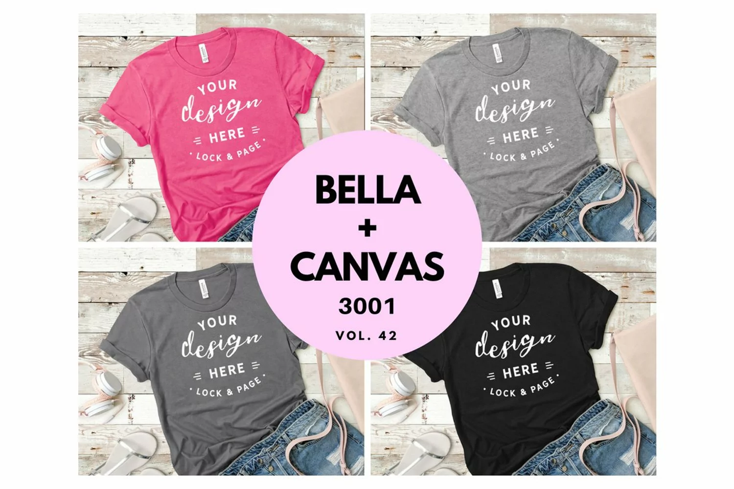 Bella Canvas 3001 Bundle T-Shirt Mockup Flat Lay Collection