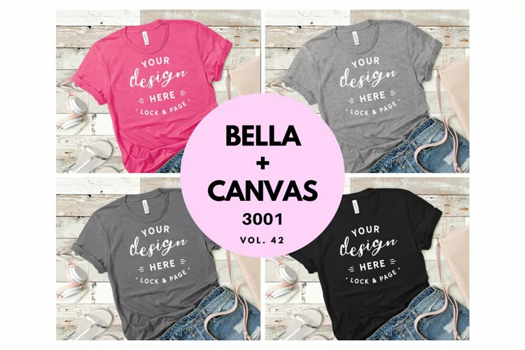 This is our stylish T-Shirt Mockup Collection featuring 4 colors available with Bella and Canvas which are: Charity Pink, Athletic Heather, Black and Asphalt.