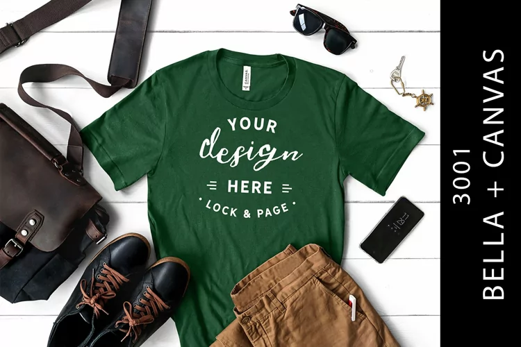 Green Evergreen Fashion Mockup Clothes Mockup Tshirt Mockup Bella Canvas 3001 Bella Canvas Mockup Fashion Flat Lay Bella And Canvas Bella Canvas Flat Lay