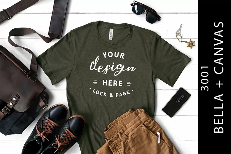 Similar Design Products to Male Heather Military Green Bella Canvas 3001 T-Shirt Mockup