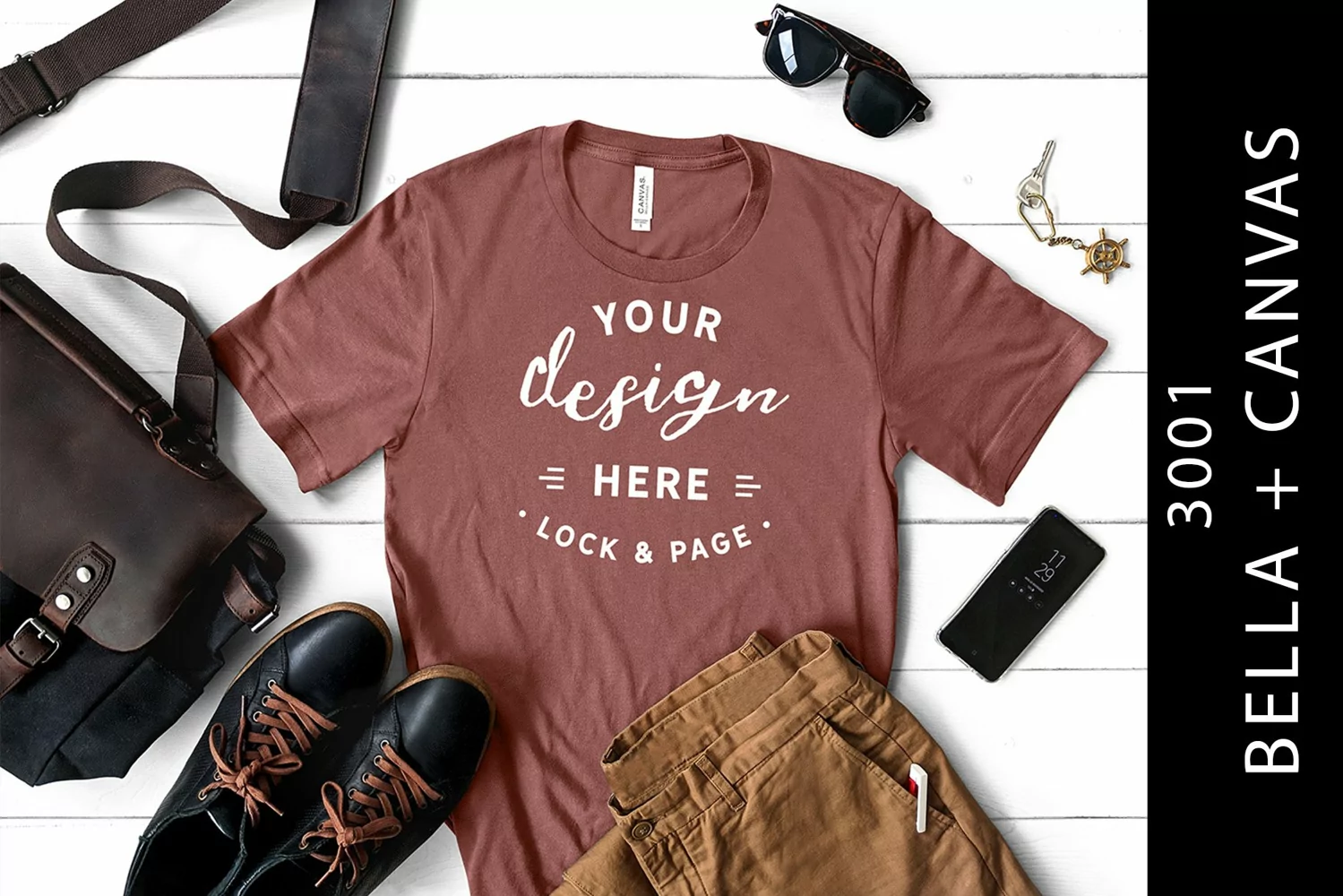 Men's Mauve Bella Canvas 3001 Mockup T-Shirt Male Flat Lay example image 1