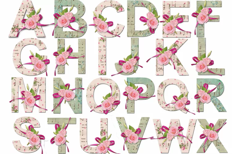 Digital Font Decorative Font Alphabet Clipart Set Alphabet Clip Art Floral Font Uppercase Letters Green Font