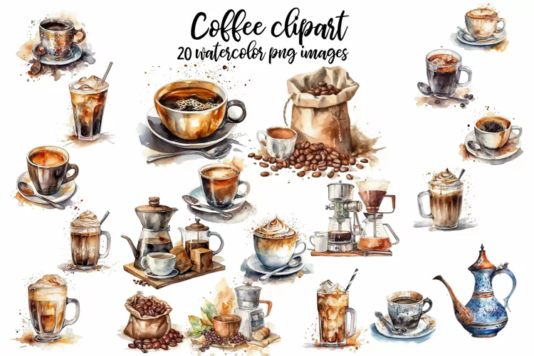 Coffee clipart, coffee watercolor, Coffee set clipart, Mocha clipart , Coffee illustration, Coffee image, Americano clipart