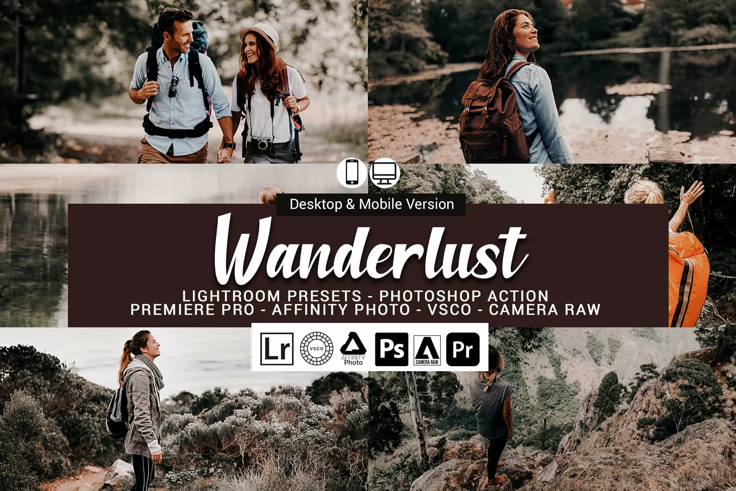 20 Wanderlust Desktop & Mobile Presets,affinity photo presets,adobe premiere pro presets,Photoshop actions,vsco presets,Lightroom Presets,