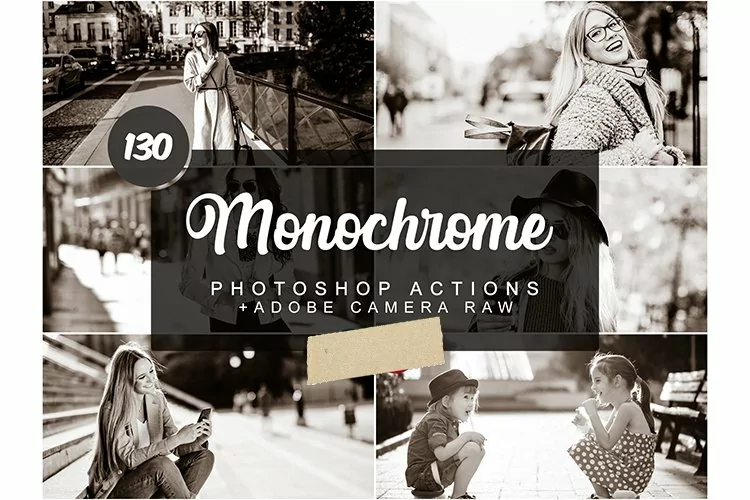 130 Monochrome Photoshop Actions and ACR Presets Bundle, Ps Actions, vsco presets, vsco filters, Actions, atn, adobe camera raw,