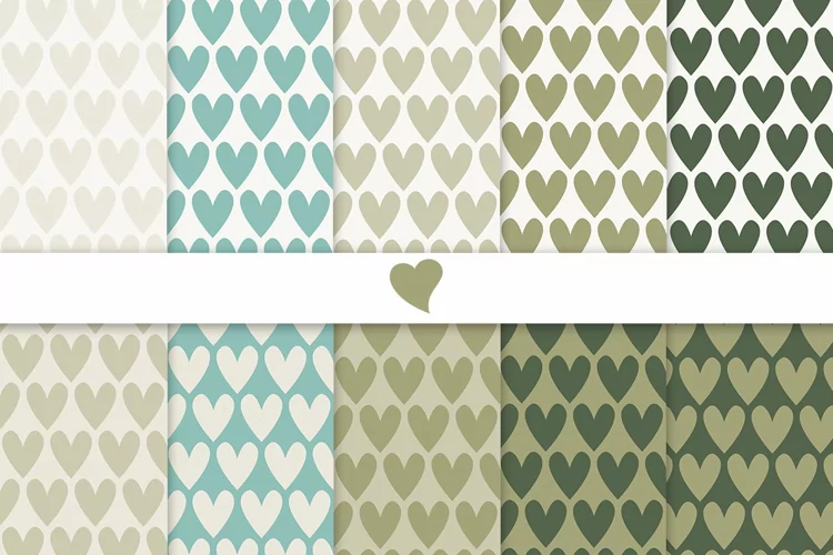 Hearts Seamless Pattern Scrapbook Paper Sublimation Repeat Pattern Junk Journal Digital Scrapbooking Paper Seamless Paper Teal Blue Olive Khaki Green