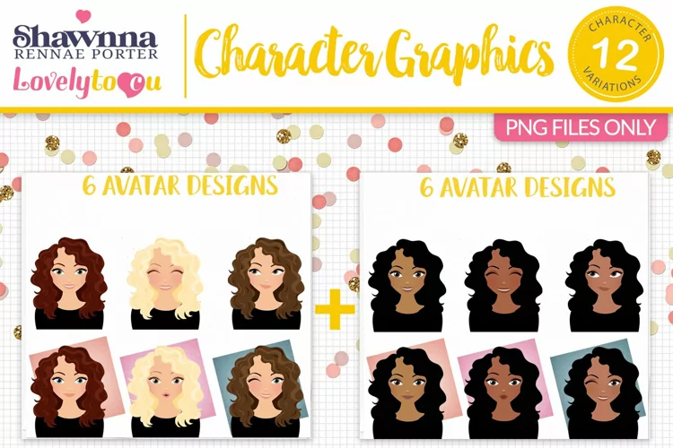 This avatar character clipart pack comes with 6 expressions and a total of 12 pre-made character variations. Images are offered in PNG format only.