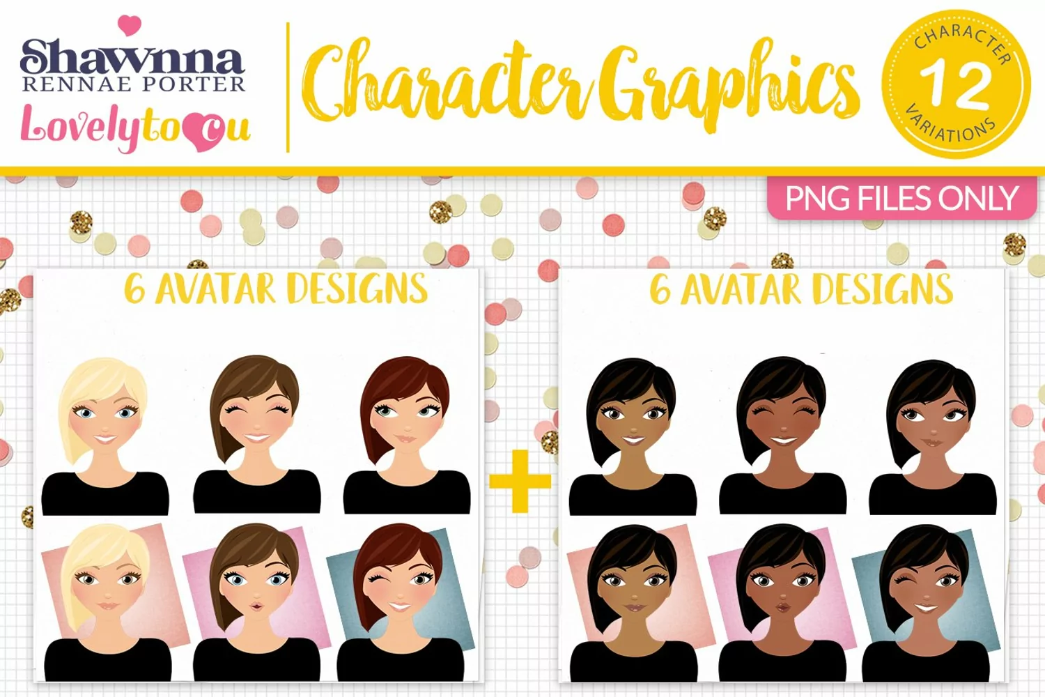 This avatar character clipart pack comes with 6 expressions and a total of 12 pre-made character variations. Images are offered in PNG format only.