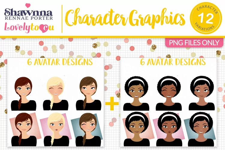 This avatar character clipart pack comes with 6 expressions and a total of 12 pre-made character variations. Images are offered in PNG format only.