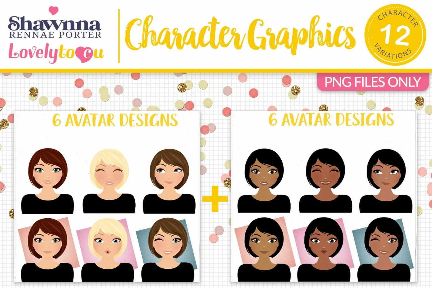 This avatar character clipart pack comes with 6 expressions and a total of 12 pre-made character variations. Images are offered in PNG format only.