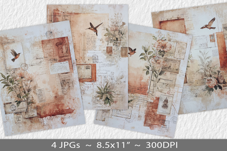 Junk journal backgrounds are perfect for designing your own folios, booklets or pockets.