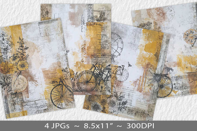 Junk journal backgrounds are perfect for designing your own folios, booklets or pockets.