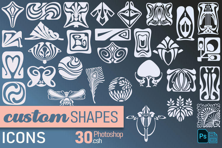 Art Nouveau Photoshop Shapes Photoshop Plugin Vector Shapes Abstract Icons Decorative Shapes Csh File Re-sizable Shape