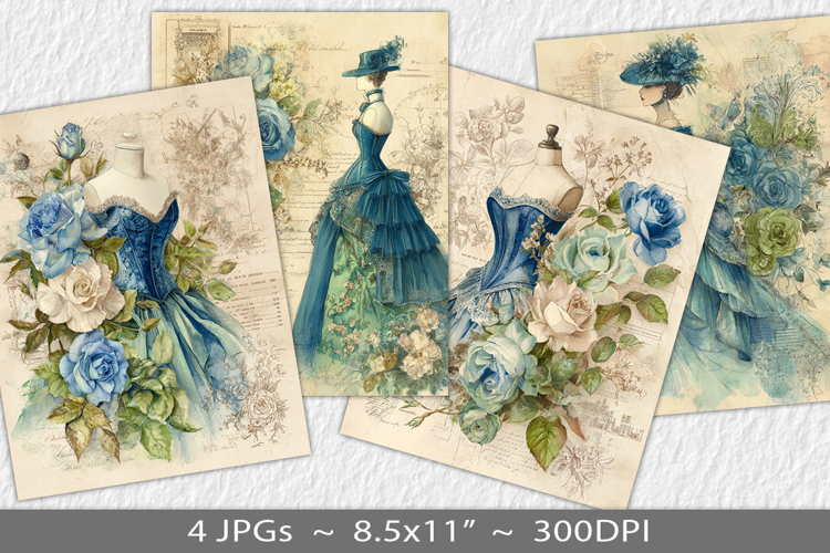 Digital Paper Scrapbook Paper Junk Journal Vintage Fashion Fashion Illustration Letter Size Paper Victorian Fashion Collage Ephemera Junk Journal Background Corset Dress