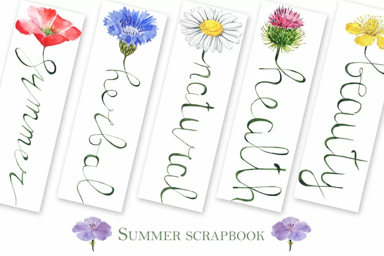 Hand Lettering Wildflowers Buttercup Hypericum Organic Font Poppy Watercolor Healthy Text Lettering With Flowers Beauty Word Geranium Field