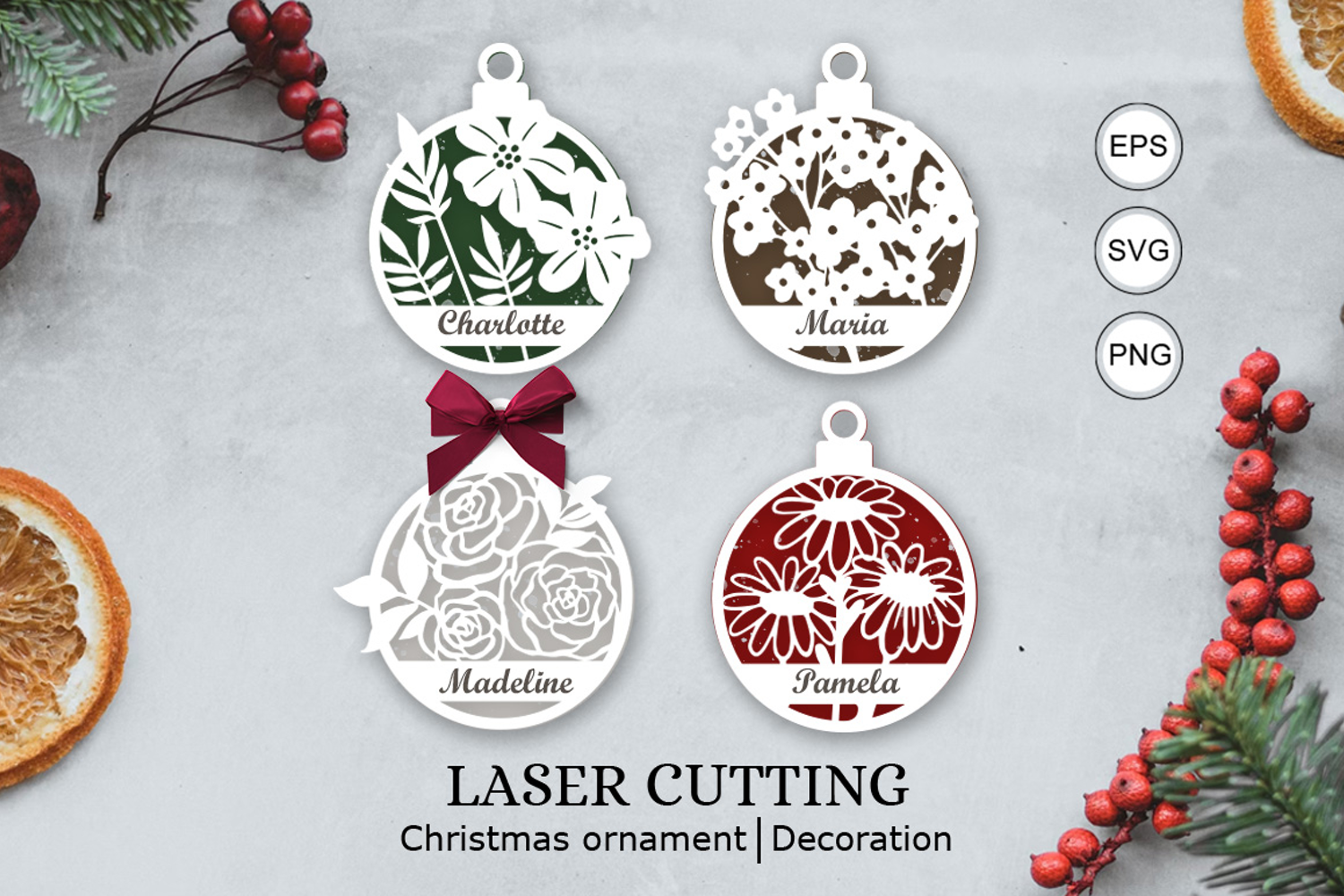 Flowers christmas personalized ornaments SVG/ laser cutting example image 1