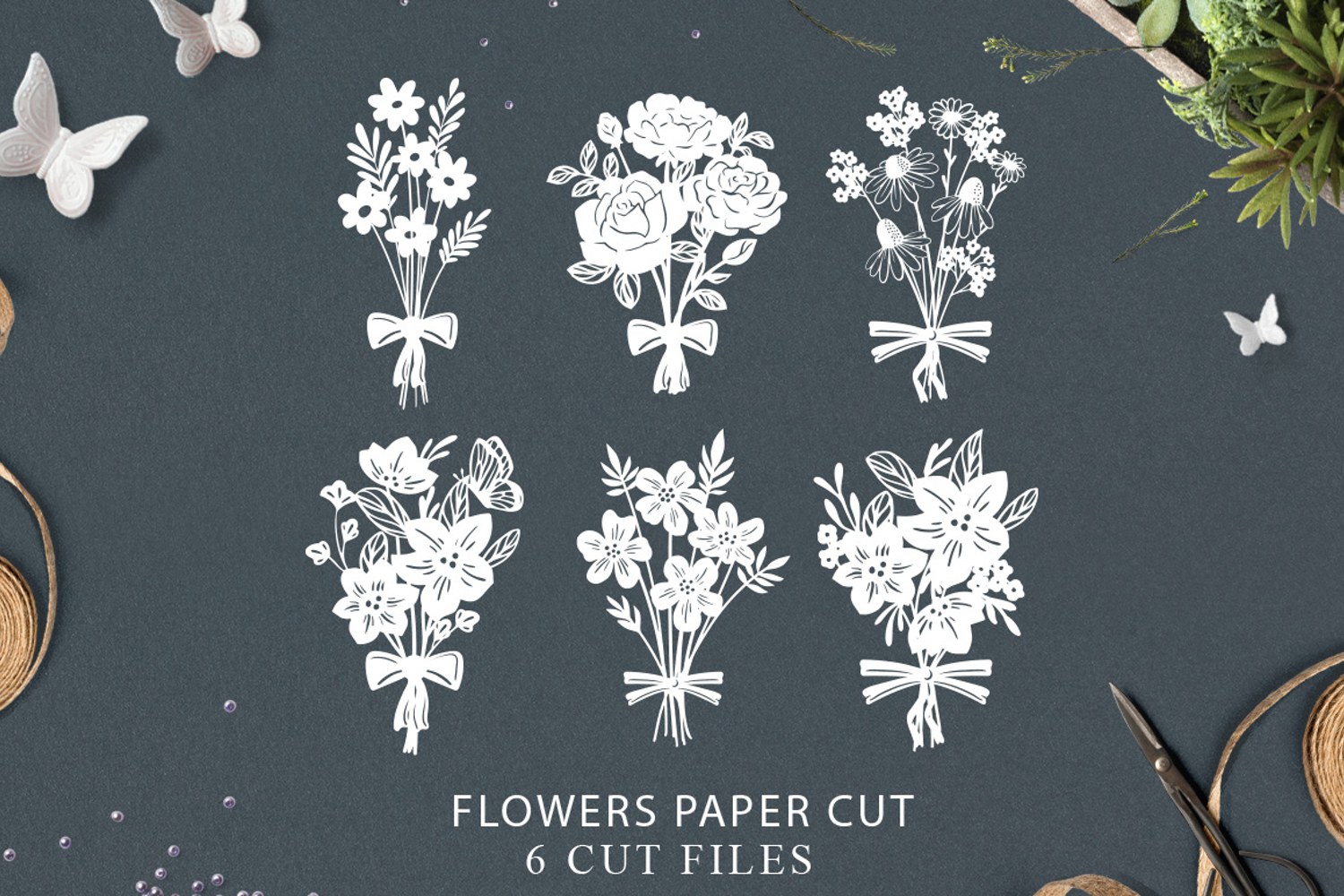 Bundle paper cut flowers / Bundle Flowers SVG File example image 1