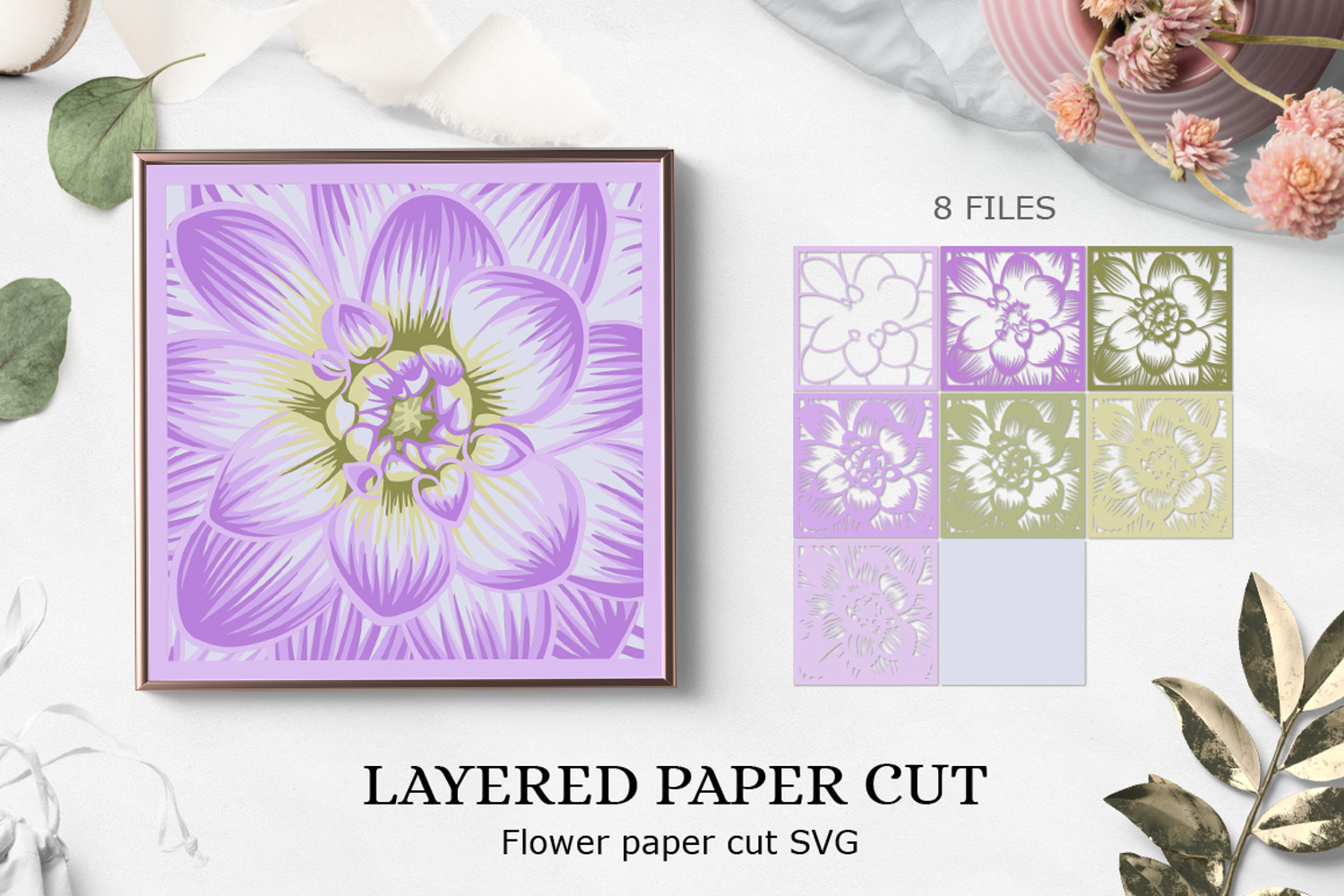 Flowers paper cutting SVG design/ layered papercut