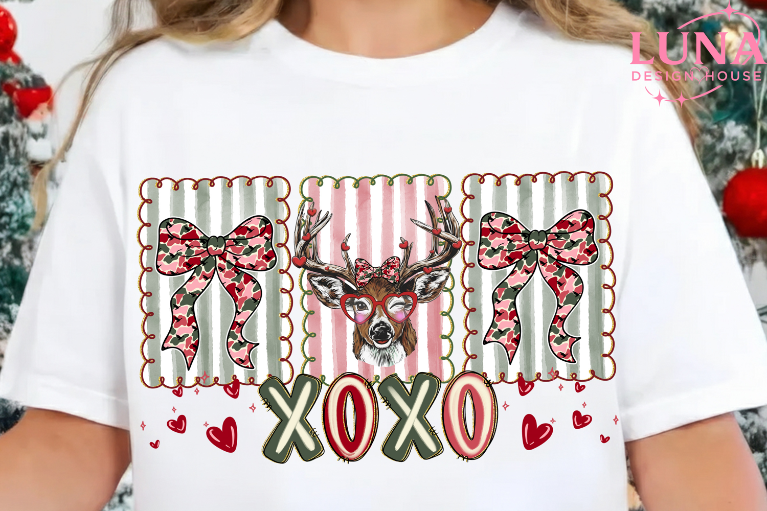 Xoxo Camo Valentine Png, Valentine Buck PNG, Coquette Png
