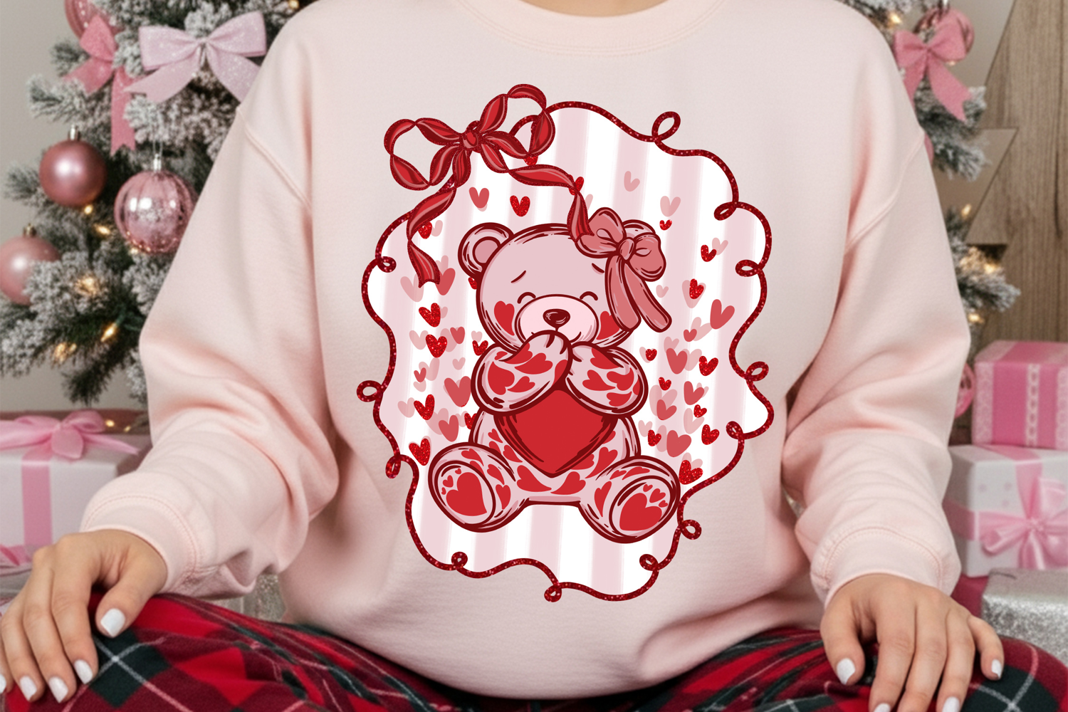 Similar Design Products to Coquette Valentine Bear Png, Heart Bear Png, Red Bow Love