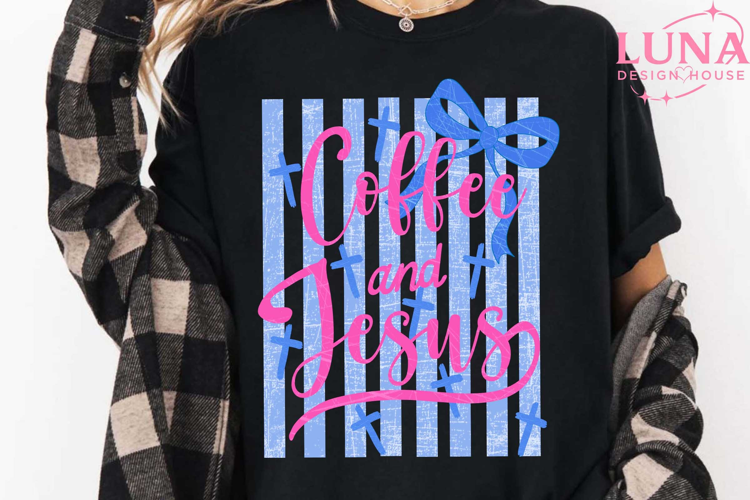 Coffee Lover Gift Spiritual Png Bible Verse Png Coffee And Jesus Png Retro Religious Png Trendy Jesus Png Coquette Bow Png Christian Coquette Blue Stripe Faith Distressed Jesus Png