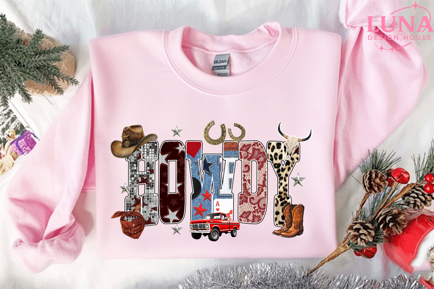 Howdy PNG Retro Western Shirt Design, Leopard Checkered Cow