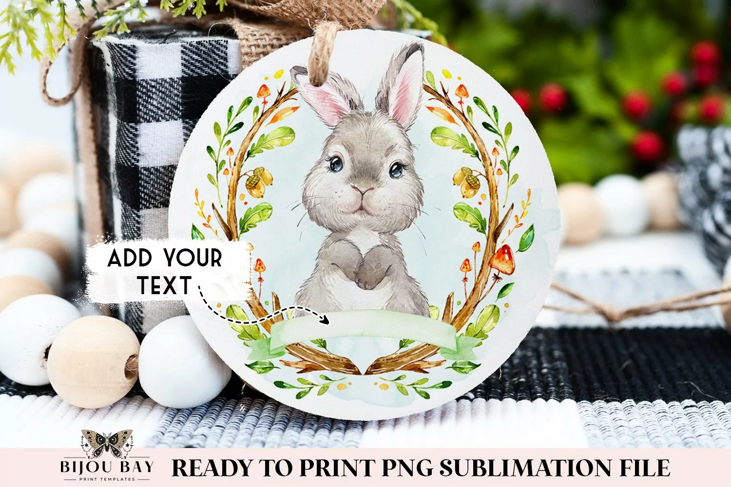 Woodland Watercolor Bunny Christmas Sublimation PNG example image 1