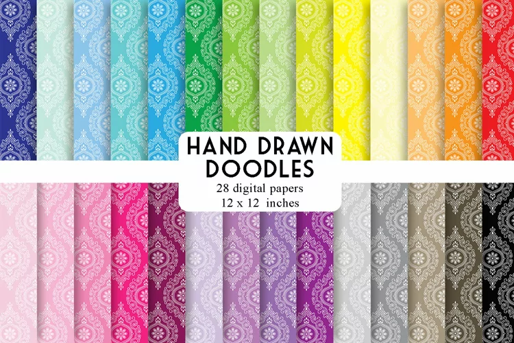 Hand Drawn Doodle Patterns Digital Paper Pack - 28 Colors