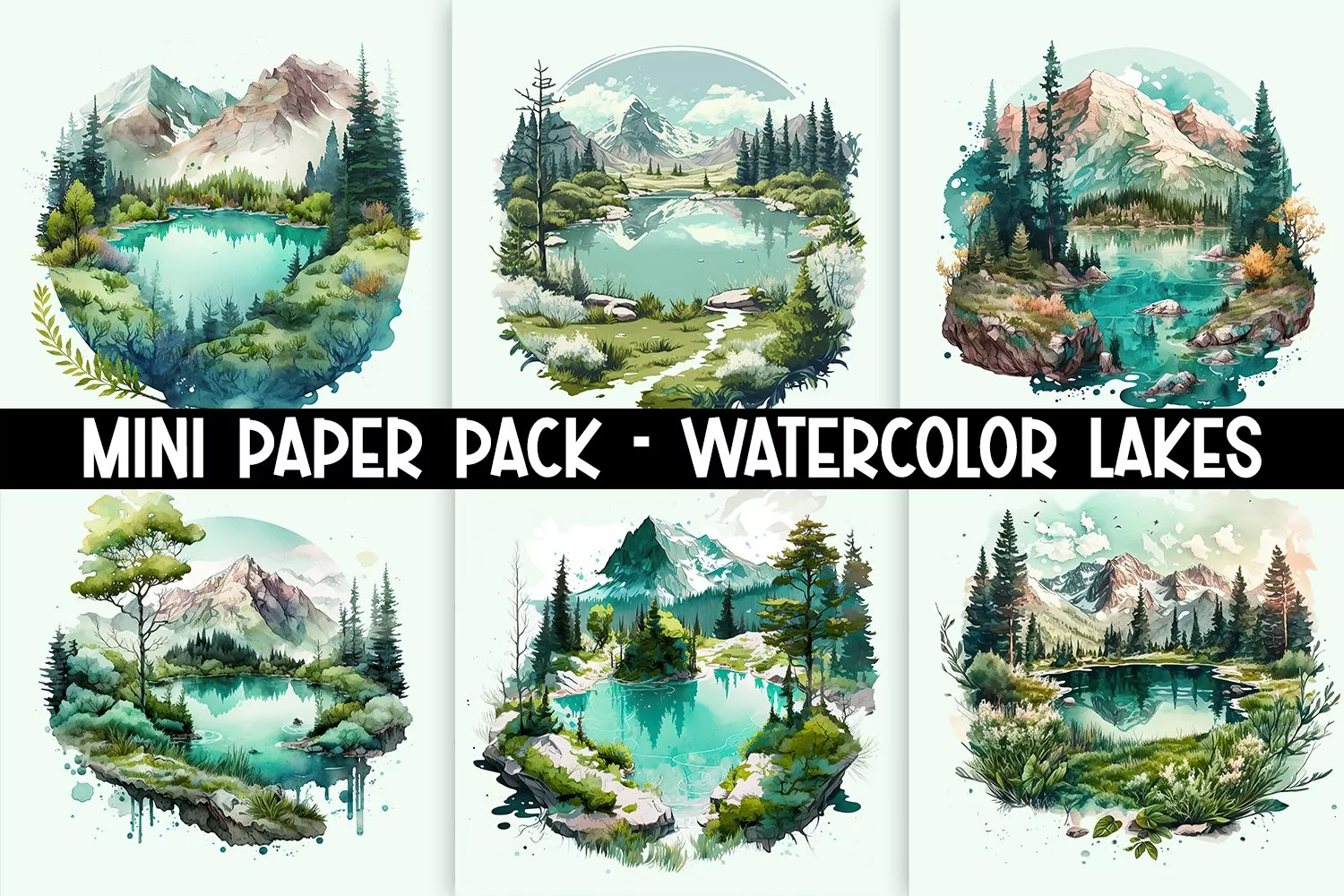 Similar Design Products to Watercolor Mountain & Lake Scenery Digital Paper Pack