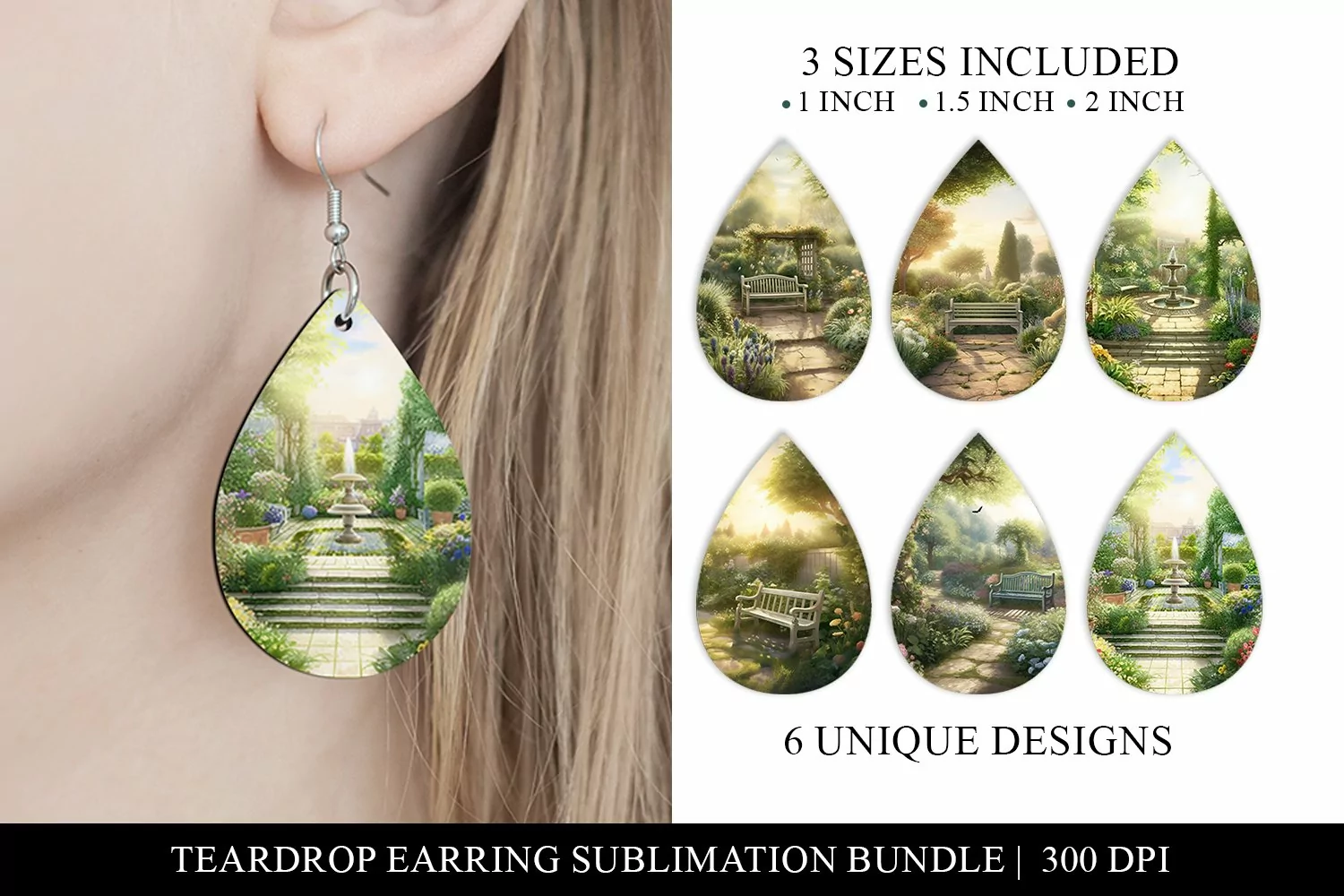 Secret Garden Teardrop Earring Sublimation Designs