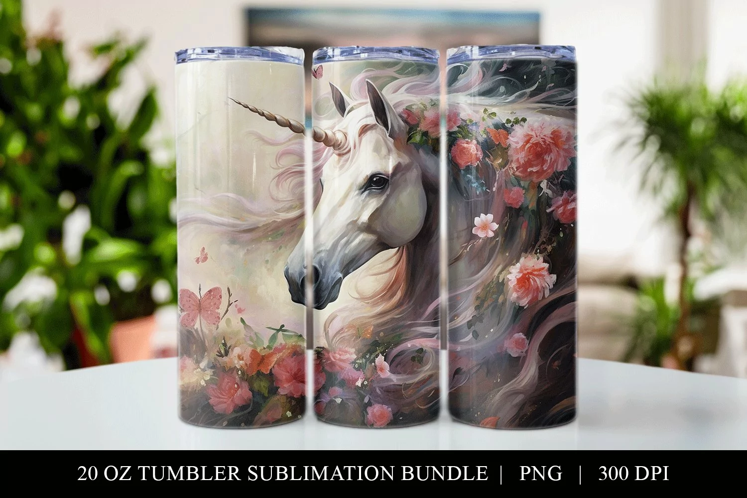 Unicorn 20 oz Straight Skinny Tumbler Sublimation PNG