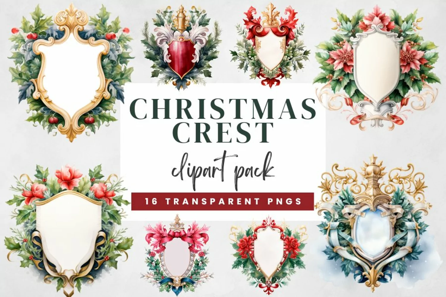 Watercolor Christmas Crest Clipart Bundle