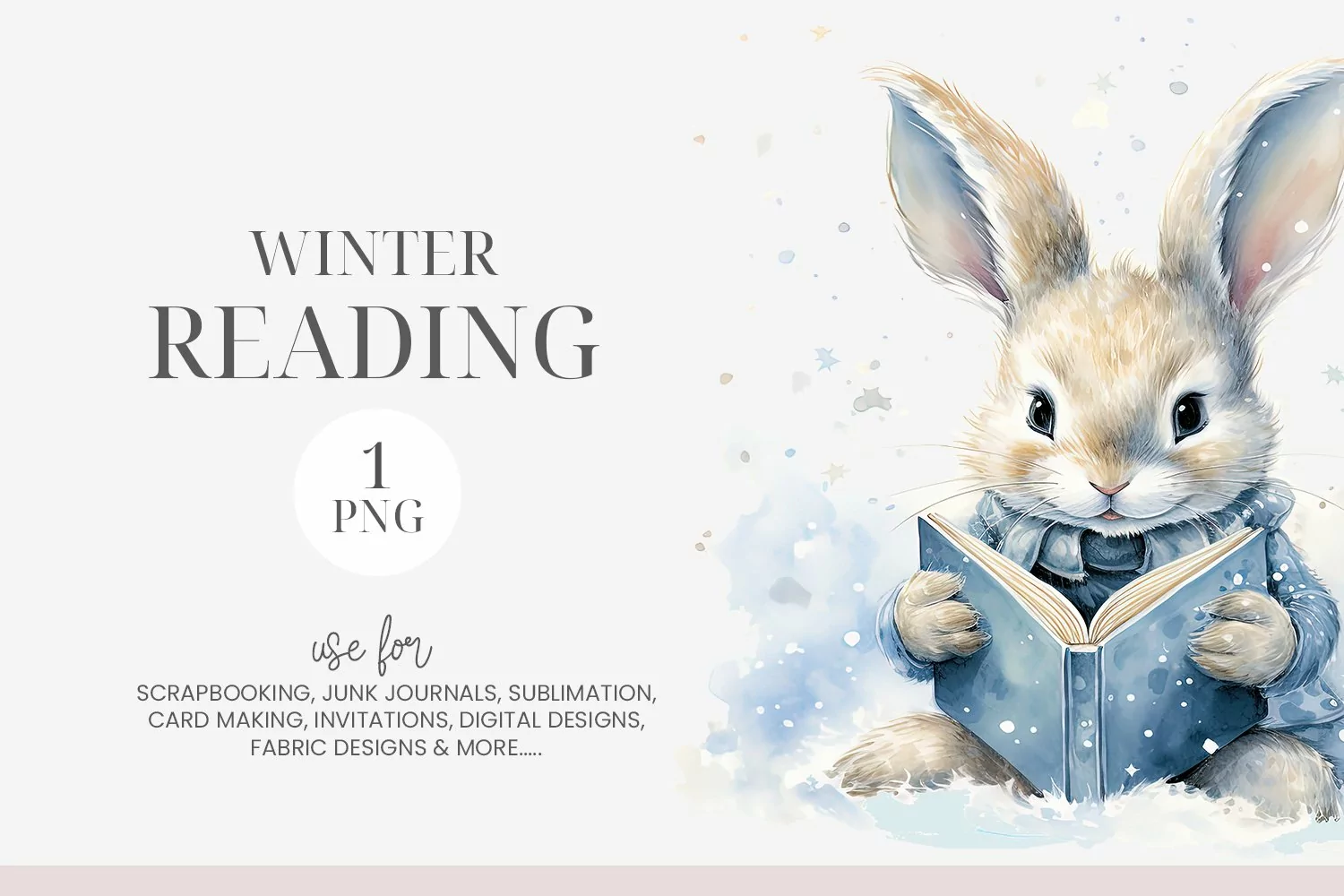 Similar Design Products to Watercolor Bunny Reading Clipart PNG