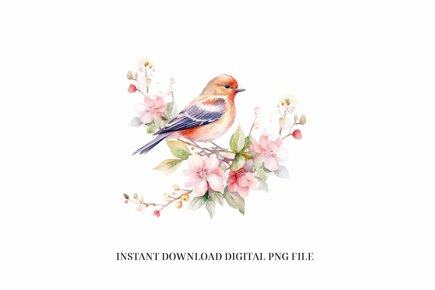 Watercolor ClipartDigital DownloadCute Bird ClipartBirds Clip ArtBird IllustrationDigital PngBirds And FlowersColorful BirdsBirds On BranchSpring Birds Clipart