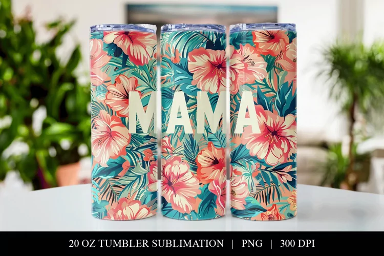 Floral Design Digital Download Tropical Print Mothers Day Gift Sublimation Design Tumbler Png Mama Tumbler 20oz Tumbler Wrap Diy Tumbler Graphic Printable Wrap