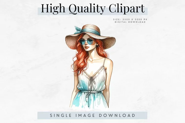 Instant Download Scrapbooking Art Digital Illustration High Quality Clipart Summer Hat Clipart Fashionable Woman Stylish Woman Fashion Art Print Elegant Lady Chic Outfit