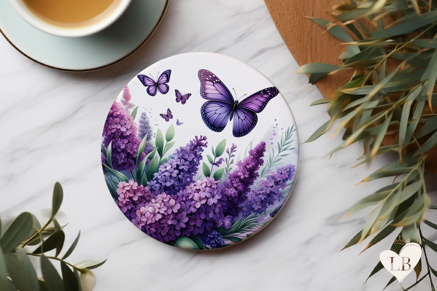 Butterfly Coaster - Lavender Round Coaster Sublimation