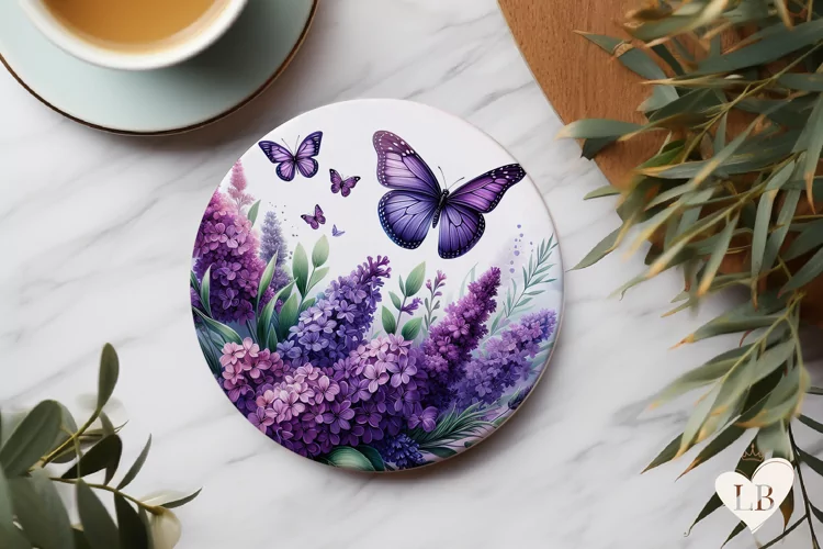 Add a touch of elegance to your sublimation projects with this stunning butterfly round coaster design. Featuring a pair of delicate purple butterflies fluttering above a lush bed of blooming lavender and lilac flowers, this artwork embodies tranquility and grace. The rich purples and soft greens create a soothing palette that is perfect for sublimation or as a waterslide image. Ideal for crafting coasters or decor items that will bring a calming and sophisticated ambiance to any space.