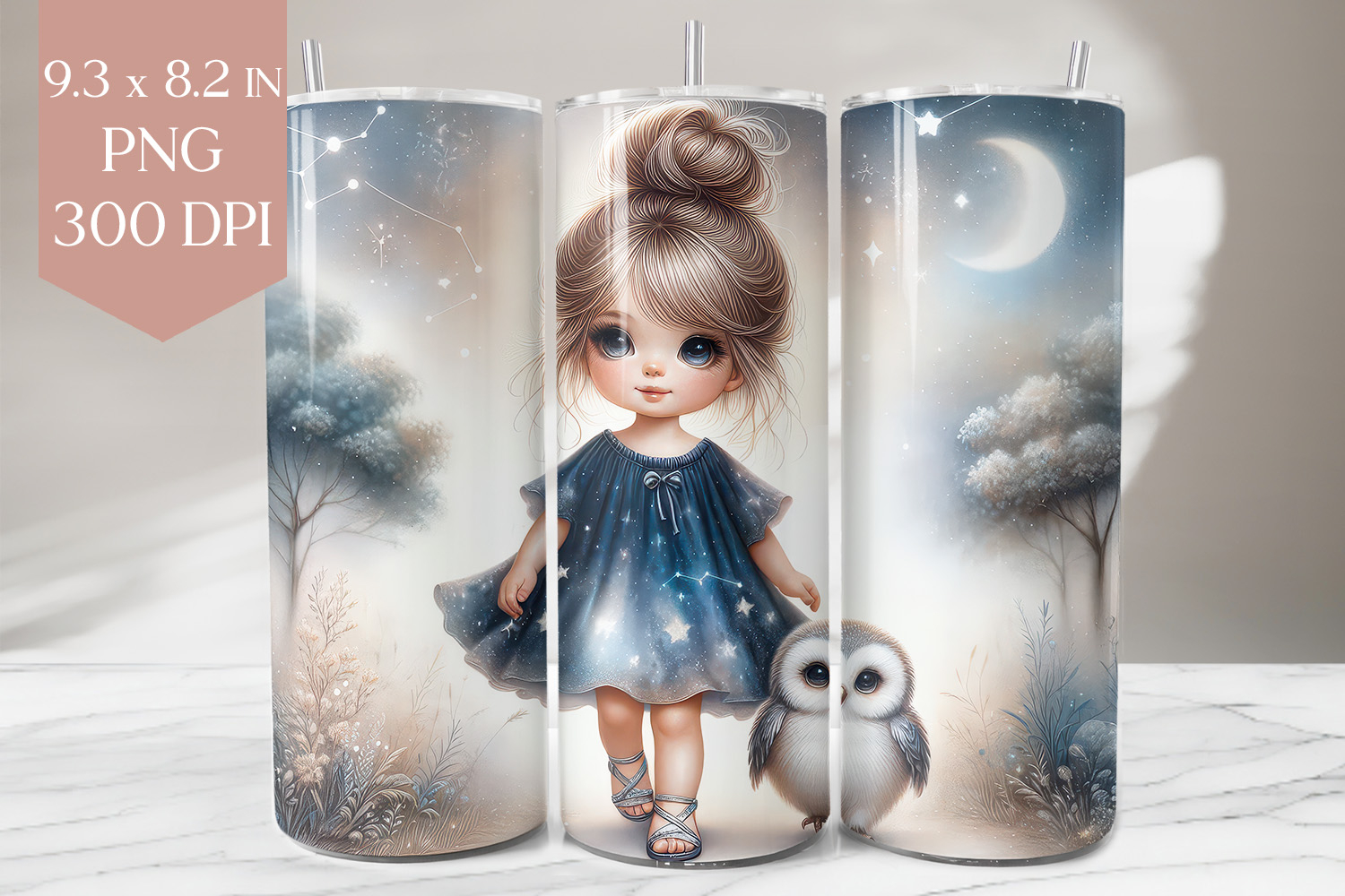 Starry Night Girl and Owl Tumbler Sublimation PNG example image 1